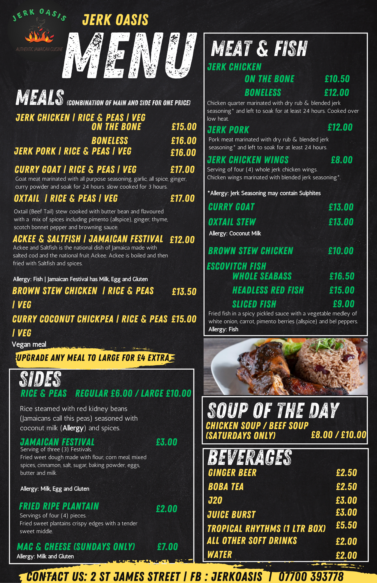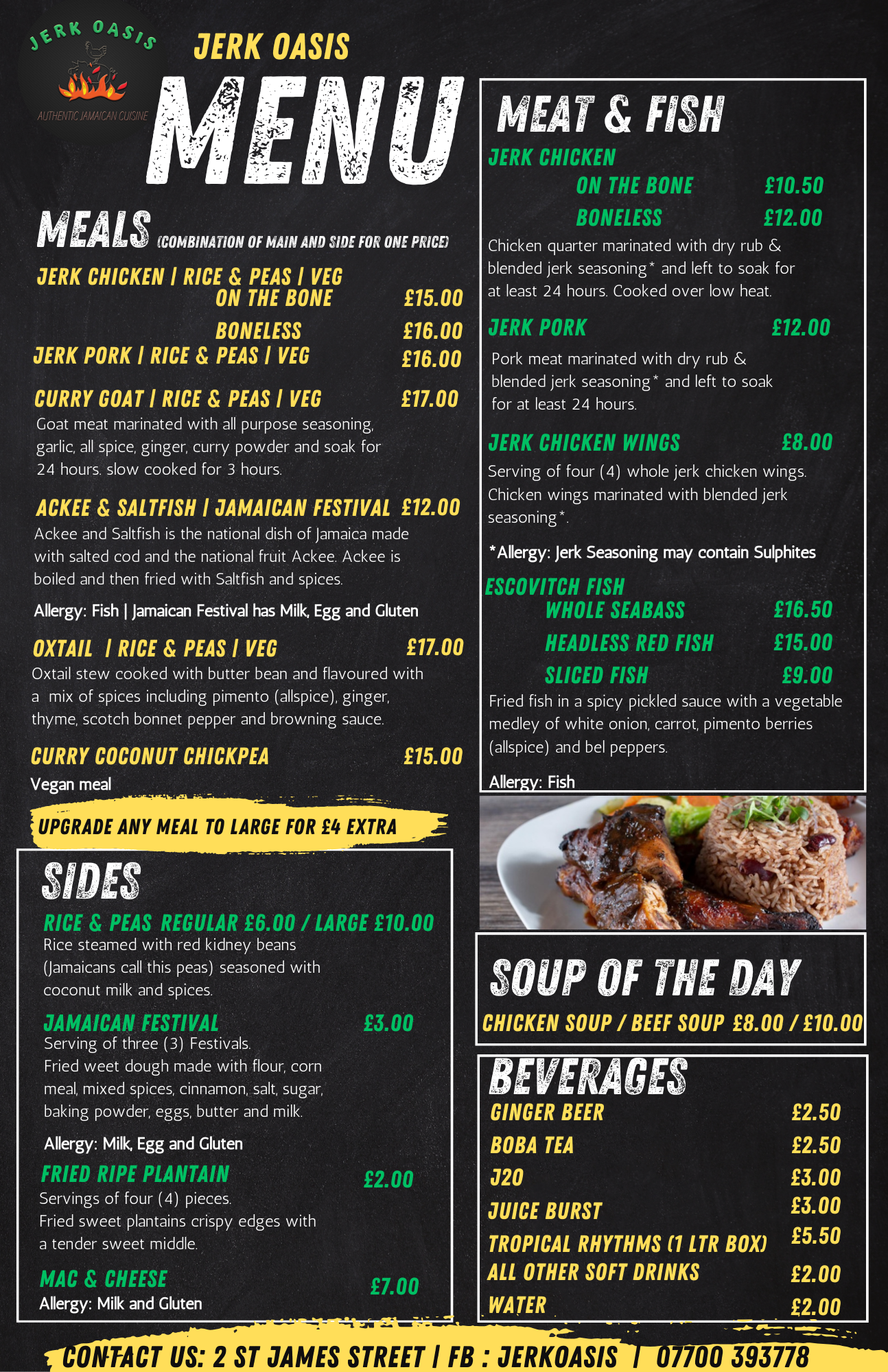 Welcome to Jerk Oasis, your go-to Jamaican takeaway shop and mobile food trailer in Jersey! We’re all about bringing the vibrant flavors and rich heritage of Jamaican cuisine straight to you.